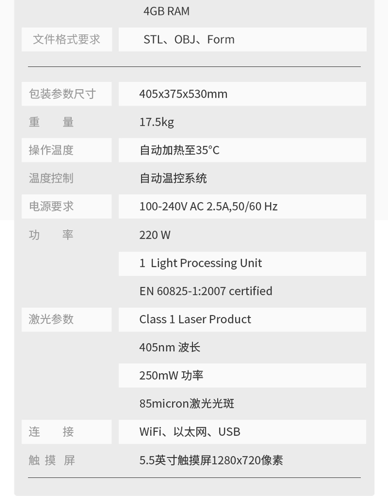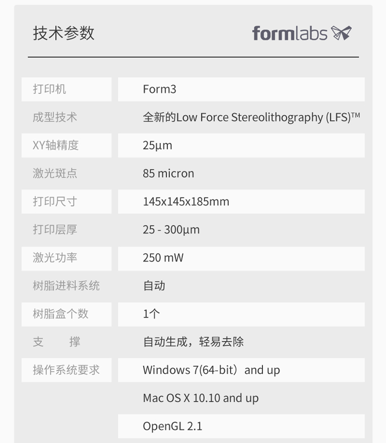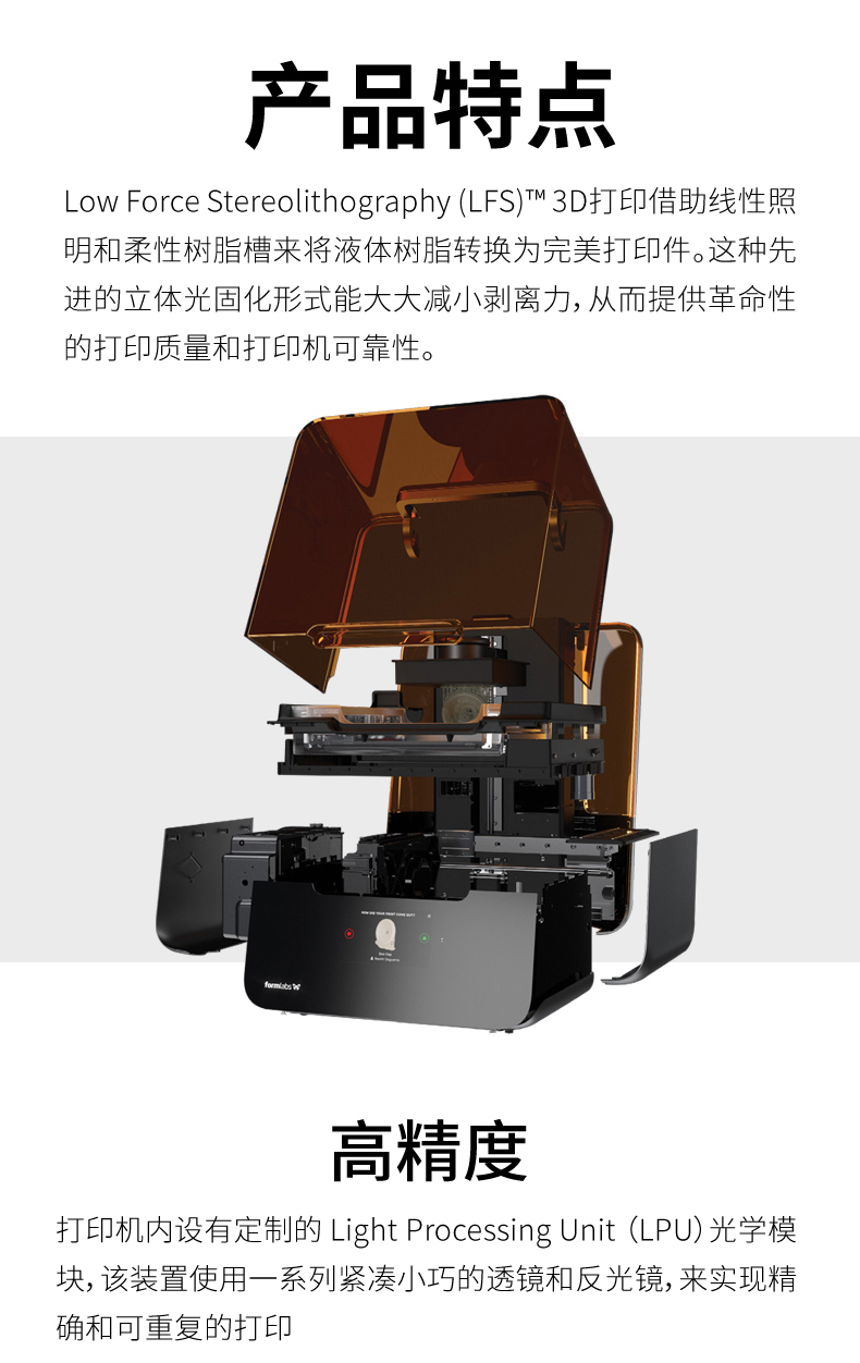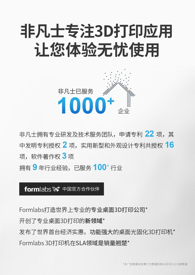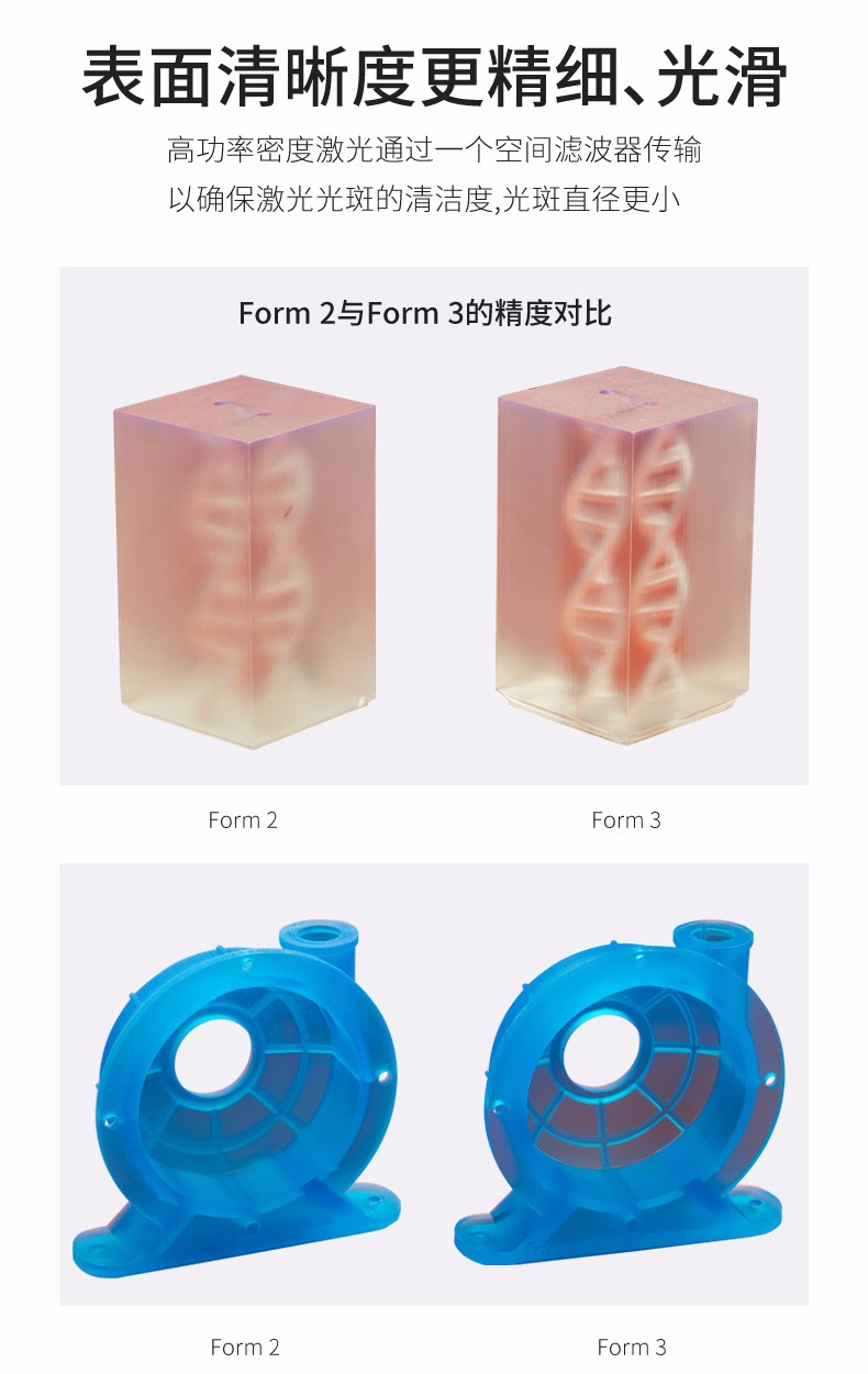 Form 3 將強大的立體光固化 (SLA) 技術搬到了桌面,僅需工業級 3D 打印機成本的一小部分,就可實現準確的高精度打印。Form 3 由高精度光學引擎驅動,其創造的打印件細節精美,表面處理效果極佳,比其他塑料 3D 打印技術的打印件更為光滑和精細。節省用于后處理工序的時間和開支,增加用于創造的時間。