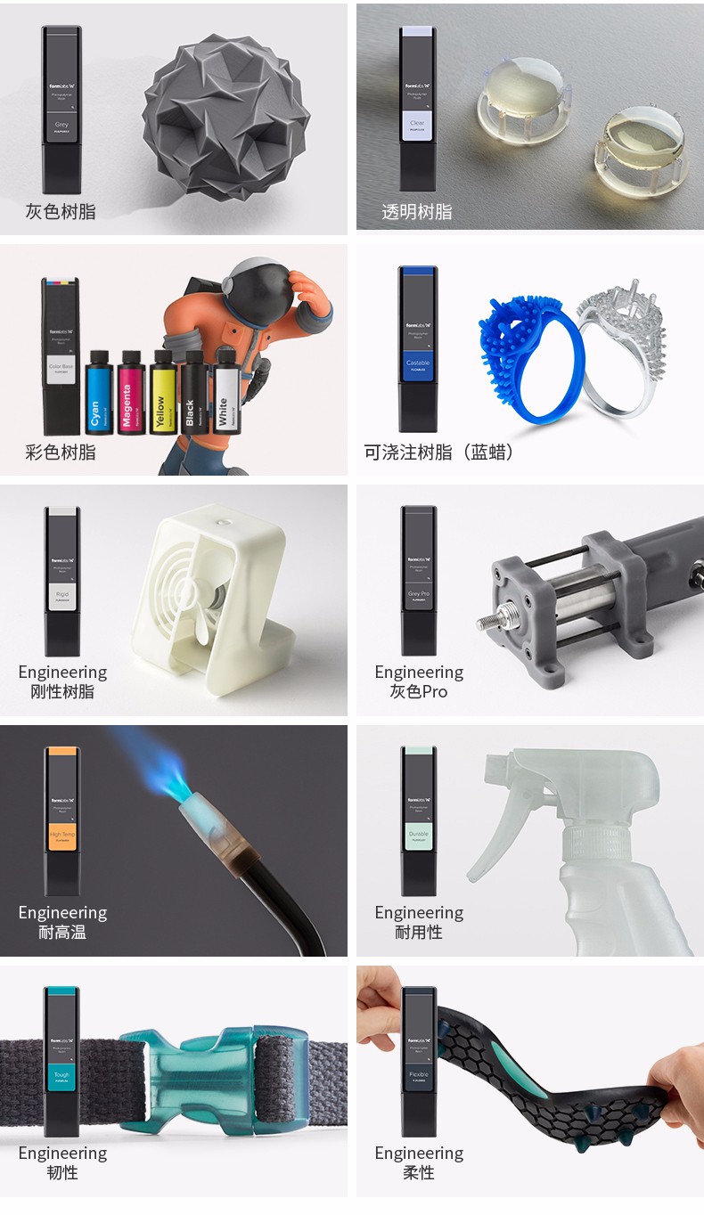在通用、高級和專業材料庫之間無縫切換。我們的內部材料科學團隊正致力于研發新材料,以擴大我們的 3D 打印機的性能。我們的樹脂專為我們的打印機而設計,可提供具有光滑表面光潔度的功能性部件,其外觀、觸感、和工作效果都與最終產品如出一轍。